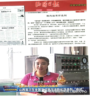 该生物浮选剂具有特殊的表面活性,与矿粒表面作用具有增加疏水性的特点,且对矿物质具有独特的选择性,与传统浮选剂相比,该产品具有绿色环保、使用量少、浮选效率高、无刺激性气味等的优点。 ﹀ ﹀ ﹀ ﹀ ﹀ ﹀ 废油脂转化生物浮选剂技术从2009年启动,先后在内蒙鄂尔多斯棋盘井、山西临汾蒲县、山西古交、山西临汾襄汾县、山西运城河津等地选煤厂进行中试试验,并取得了显著效果。2016年9月,在西安举办的“第十八届中国科协年会全国科技工作者创新创业大赛”上,本技术荣获银奖,是山西省代表队中获得两项银奖之一。2019年6月13日,“全国大众创业万众创新活动周”上,太原纽普瑞科技有限公司董事长张继龙作为十佳创业代表与楼阳生书记共同启动开幕式,同时在中国新闻网进行了报道。此外,该项目也曾多次在《山西日报》等多家媒体杂志报道。
